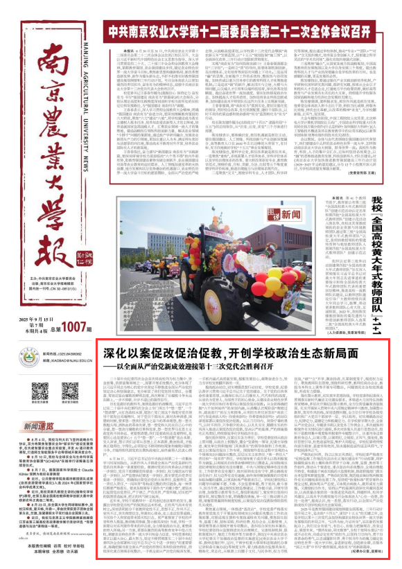 ——十二次党代会以来,我们认真履行协助职责和监督专责,努力构建基于南农实践的“大监督”体系,统筹联动、协同配合、成果共享,在做深做细日常监督上突破创新,不断增强监督治理效能。