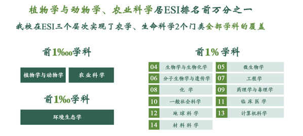 农业科学、植物学与动物学2个学科领域进入ESI学科前万分之一